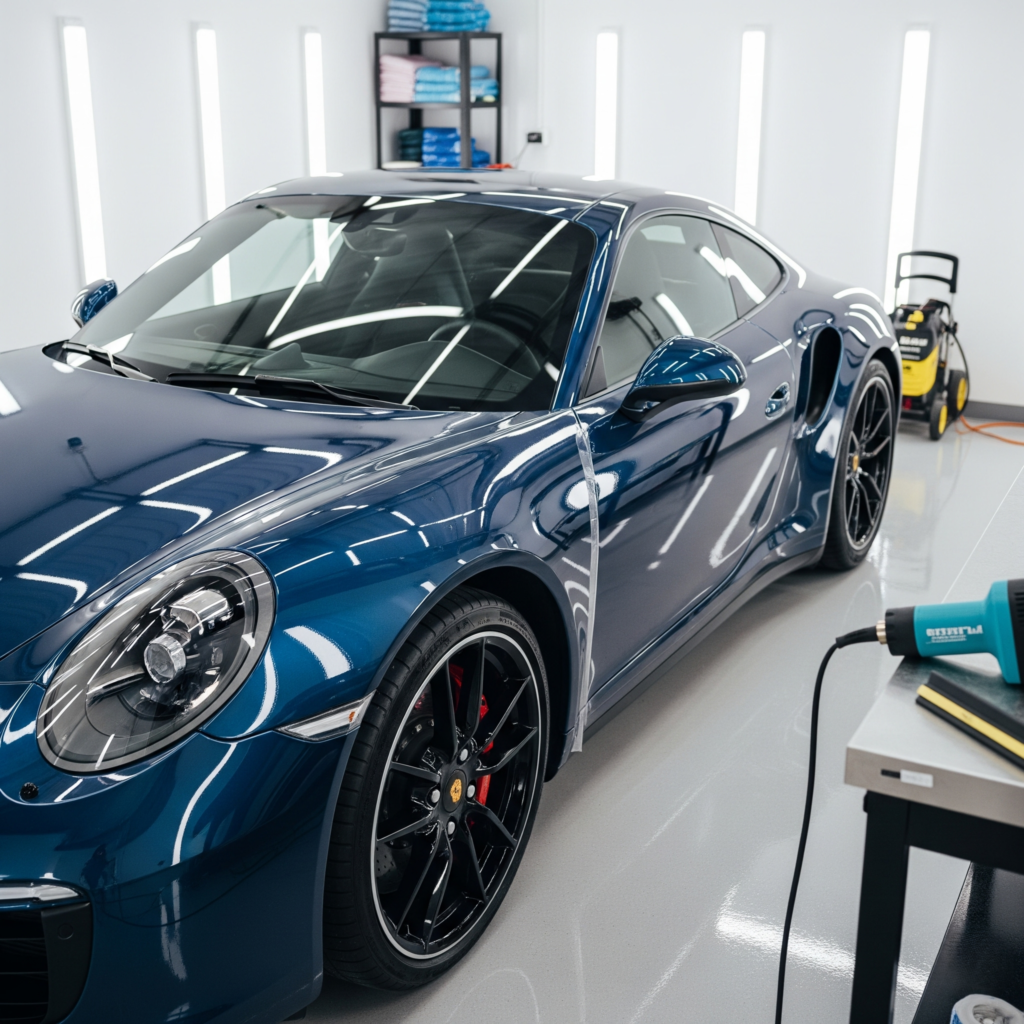 A ceramic coating acts as an additional protective layer on top of your film. It repels dirt, water, and UV rays, making maintenance easier while extending the life of PPF.